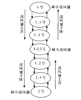 中央空調(diào)節(jié)能改造系統(tǒng)要考慮風(fēng)機的運行控制方式,即應(yīng)使每臺風(fēng)機的運行時間盡量均衡。另外,控制器應(yīng)簡單有效,設(shè)計時能考慮各種特殊情況,具有一定的抗干擾及應(yīng)變能力。