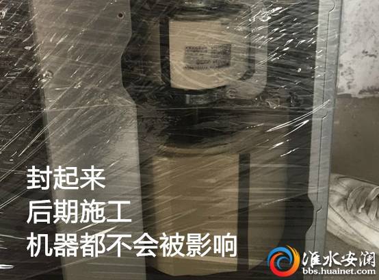 (2)做防塵處理:用膠帶把整個機器都包裹起來,因為中央空調是在裝修前期的安裝,包裹好后面施工產生的揚塵不會進入到機器里,影響使用。